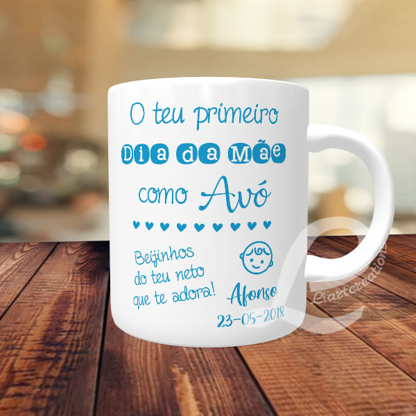 Home Canecas p/ Mãe Caneca "O teu primeiro dia da Mãe como Avó" Caneca "O teu primeiro dia da Mãe como Avó" SKU: CANM04 9,50 € Desconto de %. IVA incluído. Adicionar Contactar Adicionar à wishlist Caneca "O teu primeiro dia da Mãe como Avó" Material: Cerâmica Tamanho: 325ml Coloque no campo "personalização pretendida" o nome e a data que quer na caneca. PRAZO DE PRODUÇÃO/EXPEDIÇÃO: 3 a 5 dias úteis. Partilhar
