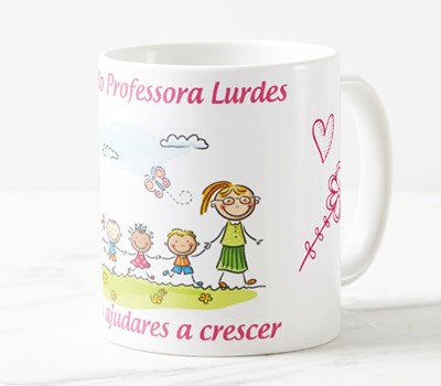 Se quiser personalizar a sua caneca com o nome da professora, coloque no campo "personalização pretendida" o nome que pretende na caneca.