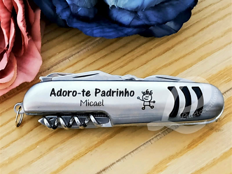 Home Padrinhos Canivete multifunções "Adoro-te Padrinho" Canivete multifunções "Adoro-te Padrinho" Personalização pretendida. Gravação no verso - 1,50 € 9,50 € Desconto de %. IVA incluído. Adicionar Contactar Adicionar à wishlist Canivete multifunções "Adoro-te Padrinho" Material: Aço Inoxidável Medida : 90 x 25 x 18 mm PRAZO DE PRODUÇÂO/EXPEDIÇÃO: 5 dias úteis. Partilhar