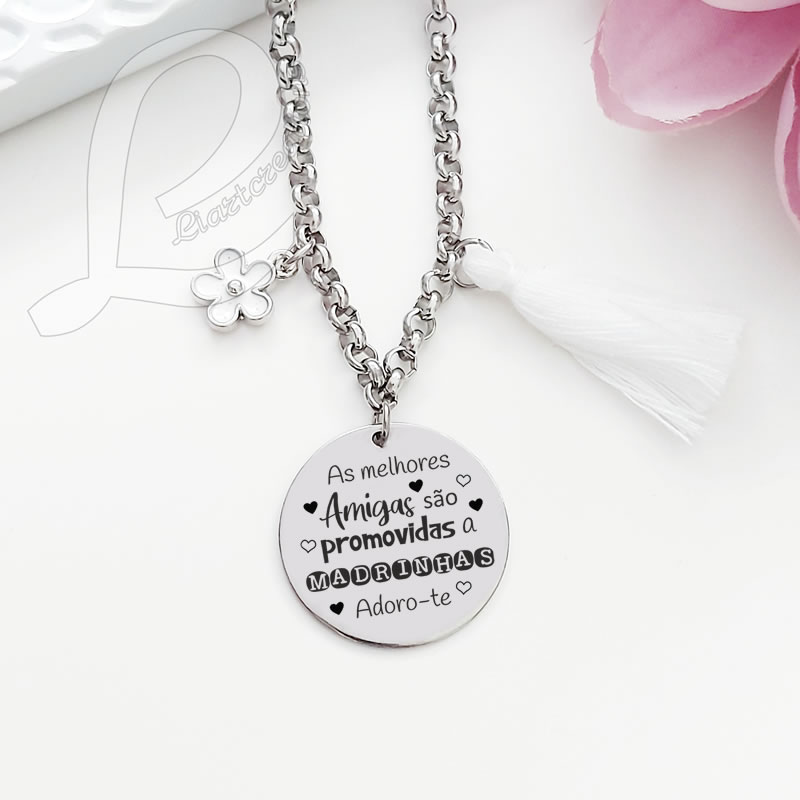 Home Madrinha Colar "As melhores Amigas são promovidas a Madrinhas" Colar "As melhores Amigas são promovidas a Madrinhas" SKU: COLMAD01 Quero alterar a gravação original Gravação no verso da medalha - 1,50 € 10,00 € Desconto de %. IVA incluído. Adicionar Contactar Adicionar à wishlist Colar "As melhores Amigas são promovidas a Madrinhas" Material: Aço Inoxidável ( há excepção da flor e do pompom) PRAZO DE PRODUÇÃO/ EXPEDIÇÃO: 5 dias úteis. Partilhar