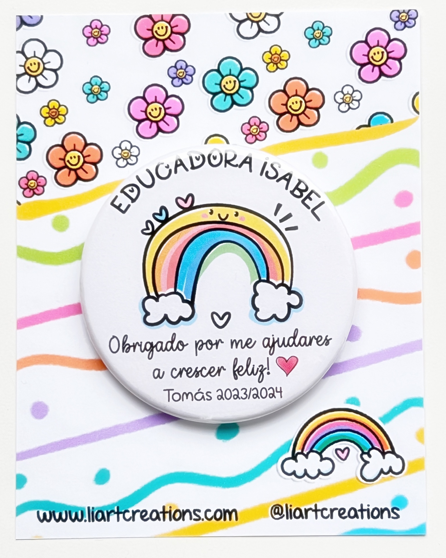 Home Professoras e Educadoras Crachá personalizado com arco íris "Obrigado por me ajudares a crescer feliz!" Crachá personalizado com arco íris "Obrigado por me ajudares a crescer feliz!" SKU: CRPE01 Tipo de Crachá Alfinete Iman Personalização pretendida. 4,75 € Desconto de %. IVA incluído. Adicionar Contactar Adicionar à wishlist Crachá personalizado com arco íris "Obrigado por me ajudares a crescer feliz!" Medida: 59mm PRAZO DE PRODUÇÃO/EXPEDIÇÃO: 5 dias úteis. Partilhar
