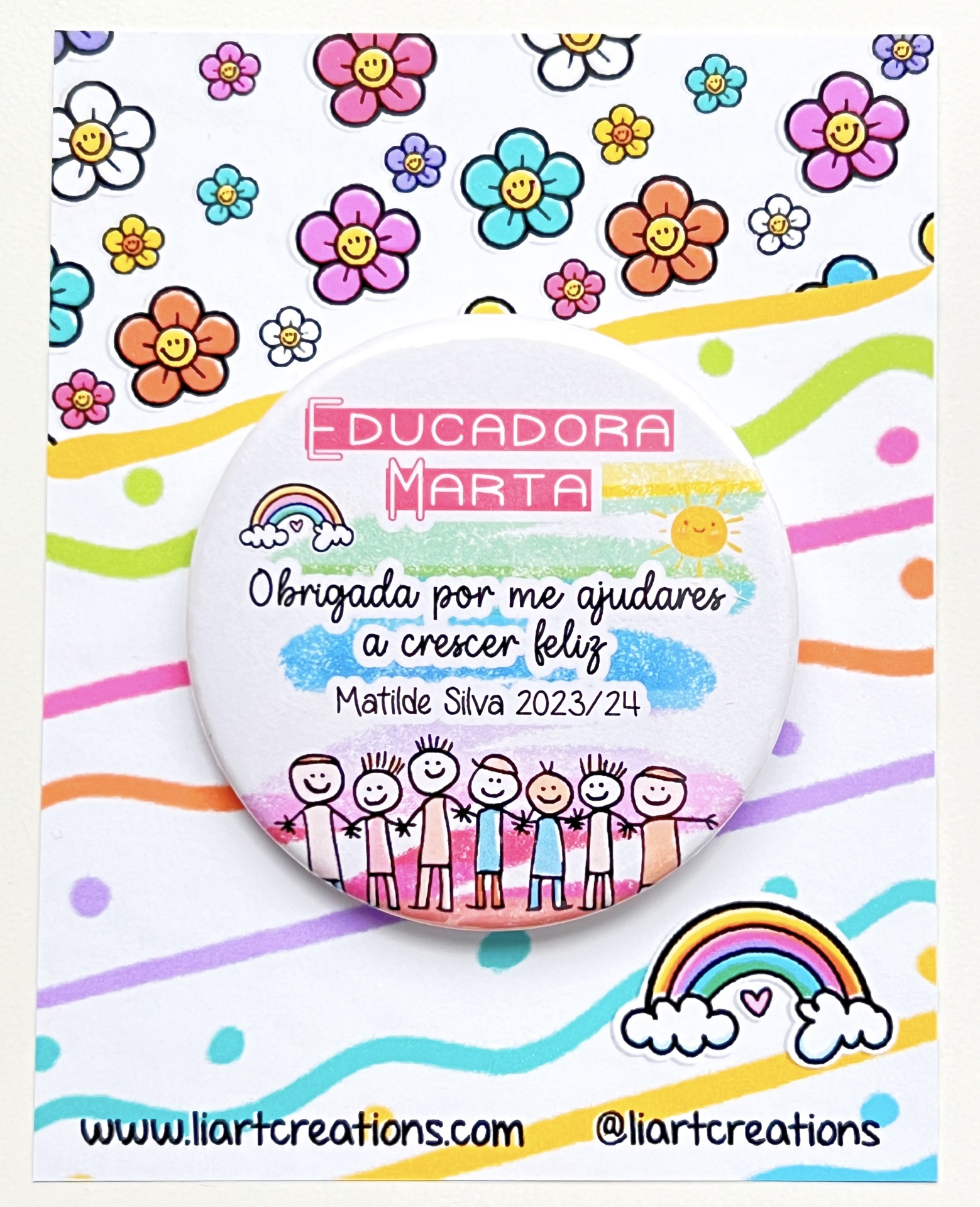 Home Professoras e Educadoras Crachá personalizado "Obrigado por me ajudares a crescer feliz!" Crachá personalizado "Obrigado por me ajudares a crescer feliz!" SKU: CRPE02 Tipo de Crachá Alfinete Iman Personalização pretendida. 4,75 € Desconto de %. IVA incluído. Adicionar Contactar Adicionar à wishlist Crachá personalizado "Obrigado por me ajudares a crescer feliz!" Medida: 59mm PRAZO DE PRODUÇÃO/EXPEDIÇÃO: 5 dias úteis. Partilhar