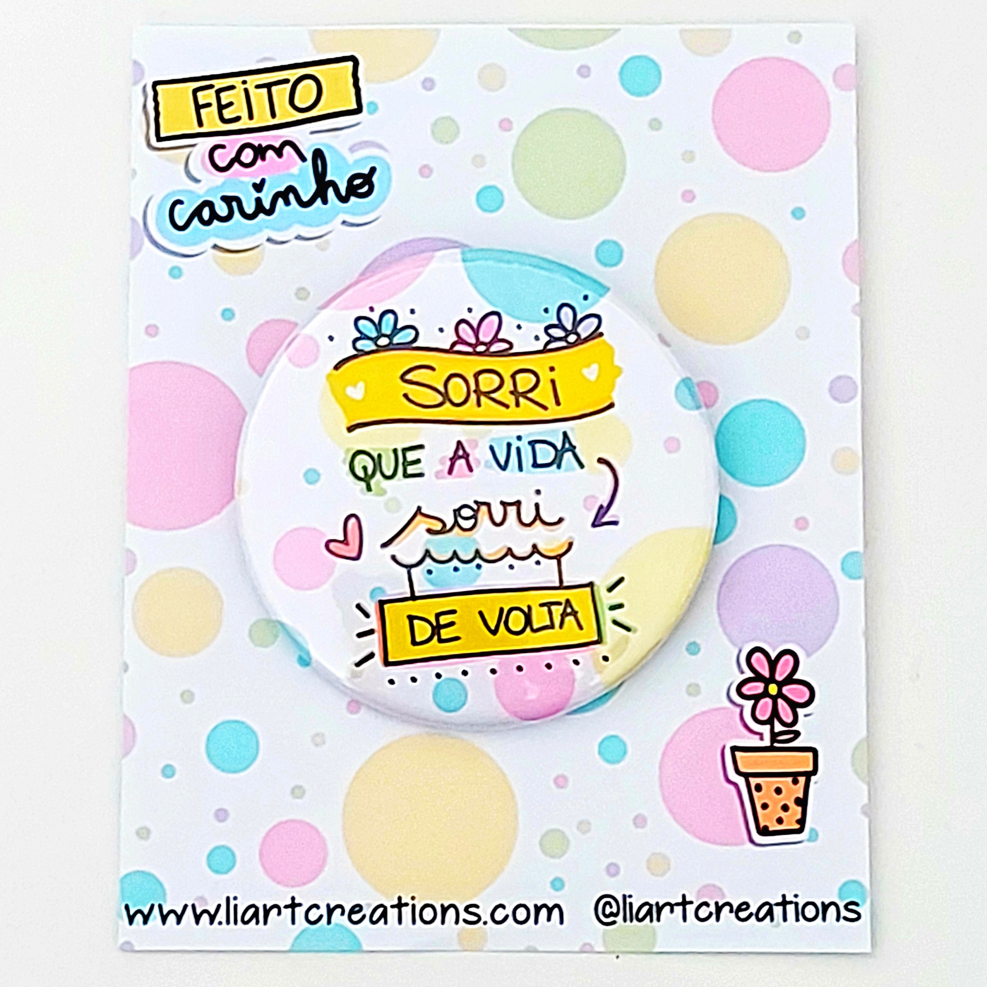 Home Frases Motivacionais Crachá "Sorri que a vida sorri de volta" Crachá "Sorri que a vida sorri de volta" SKU: CRFM04 Opção Alfinete Iman 5,00 € Desconto de %. IVA incluído. Adicionar Contactar Adicionar à wishlist Crachá "Sorri que a vida sorri de volta" Medida: 59mm PRAZO DE PRODUÇÃO/EXPEDIÇÃO: 5 dias úteis. Partilhar