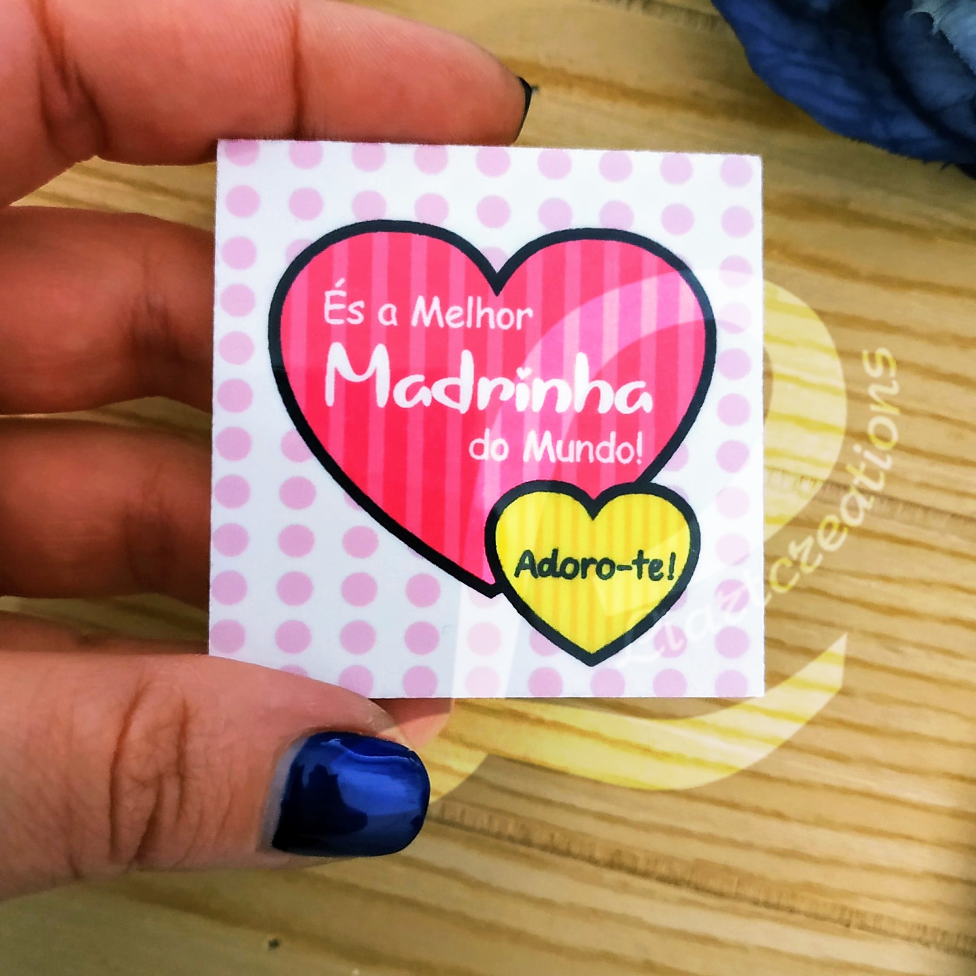 Home Padrinhos Íman em Cerâmica "És a melhor Madrinha do Mundo! Íman em Cerâmica "És a melhor Madrinha do Mundo! SKU: IMP04 4,00 € Desconto de %. IVA incluído. Adicionar Contactar Adicionar à wishlist Íman em Cerâmica "És a melhor Madrinha do Mundo! Material: Cerâmica Medida: 55x55mm PRAZO DE PRODUÇÃO/EXPEDIÇÂO: 5 dias úteis. Partilhar