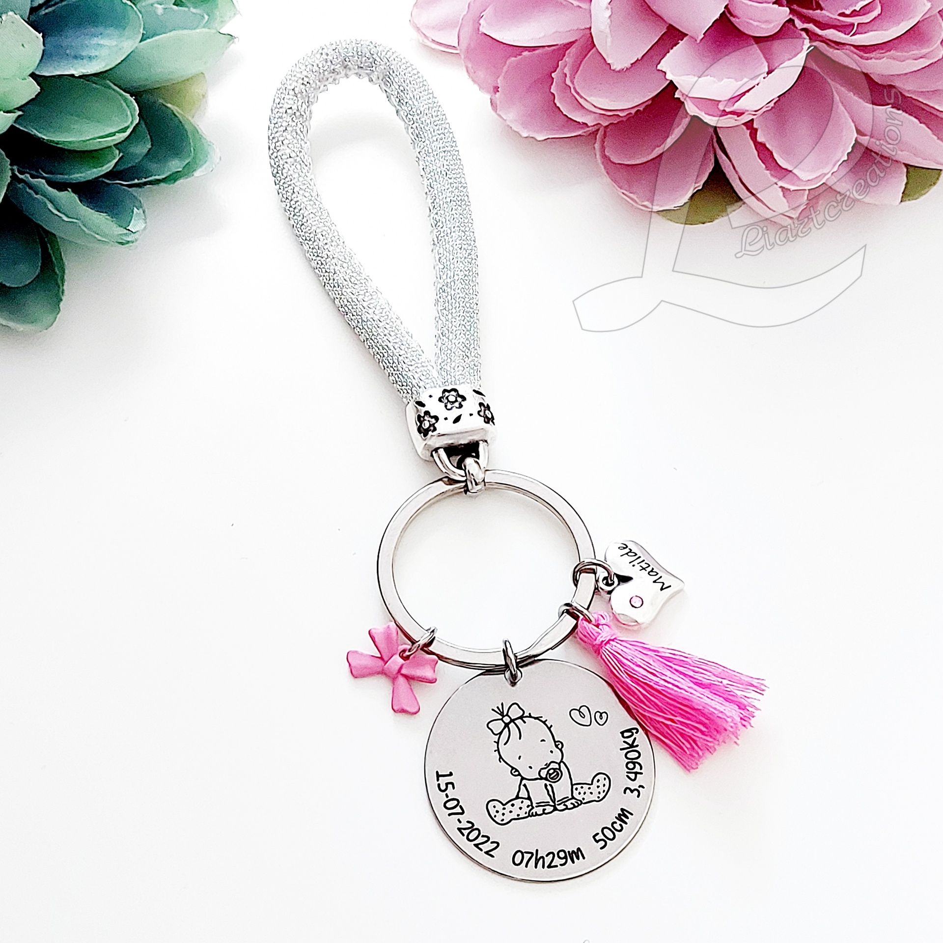 Home Nascimento Porta-chaves personalizado com dados de nascimento Porta-chaves personalizado com dados de nascimento Dados de Nascimento Gravação de mensagem no verso do porta-chaves - 1,50 € Gravação de dados de nascimento no verso - 3,00 € 9,50 € Desconto de %. IVA incluído. Adicionar Contactar Adicionar à wishlist Porta-chaves personalizado com dados de nascimento Material: Algodão, Metal PRAZO DE PRODUÇÃO/ EXPEDIÇÃO: 5 dias úteis. NOTA: Nos porta chaves com dados de meninos os pendentes são azui e nos porta chaves com dados de menina os pendentes são rosa. Partilhar