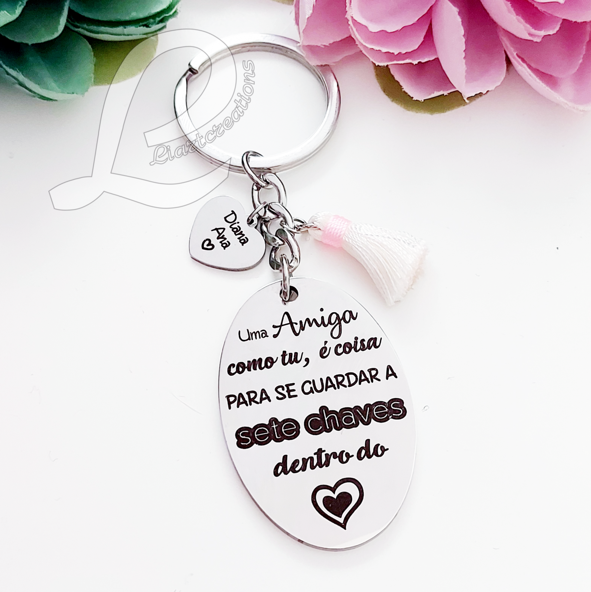 Home Amizade Porta-Chaves "Uma Amiga como tu, é coisa para se guardar a 7 chaves dentro do coração" Porta-Chaves "Uma Amiga como tu, é coisa para se guardar a 7 chaves dentro do coração" Gravação no coração Quero alterar a gravação original Gravação de mensagem no verso do porta-chaves - 1,50 € 9,50 € Desconto de %. IVA incluído. Adicionar Contactar Adicionar à wishlist Porta-Chaves "Uma Amiga como tu, é coisa para se guardar a 7 chaves dentro do coração" Material: Metal PRAZO DE PRODUÇÃO/ EXPEDIÇÃO: 5 dias úteis. Partilhar
