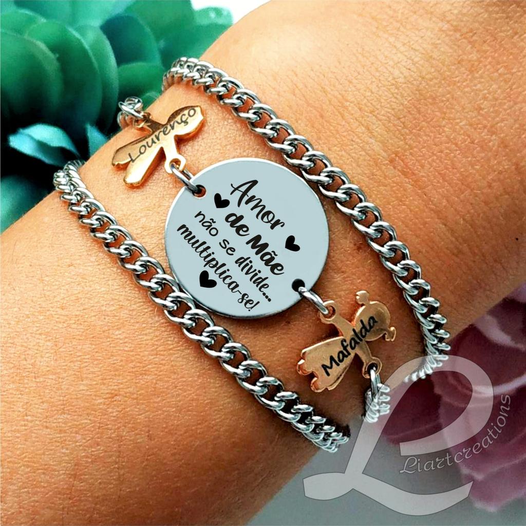 Pulseira 3 voltas em corrente "Amor de Mãe não se divide...multiplica-se!"