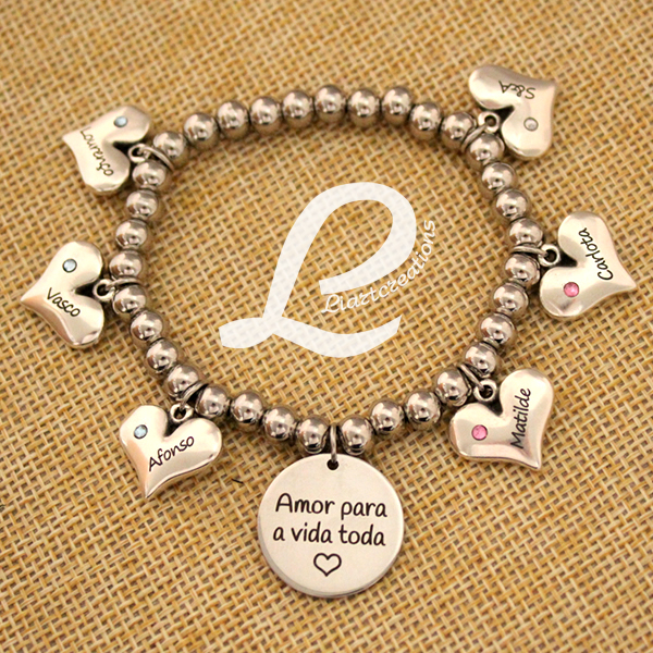 NOTA IMPORTANTE: Esta pulseira tem na sua composição medalhas em zamak/banho de prata. Para prolongar a sua beleza requer alguns cuidados como não colocar perfume diretamente e não tomar banho coma pulseira colocada.