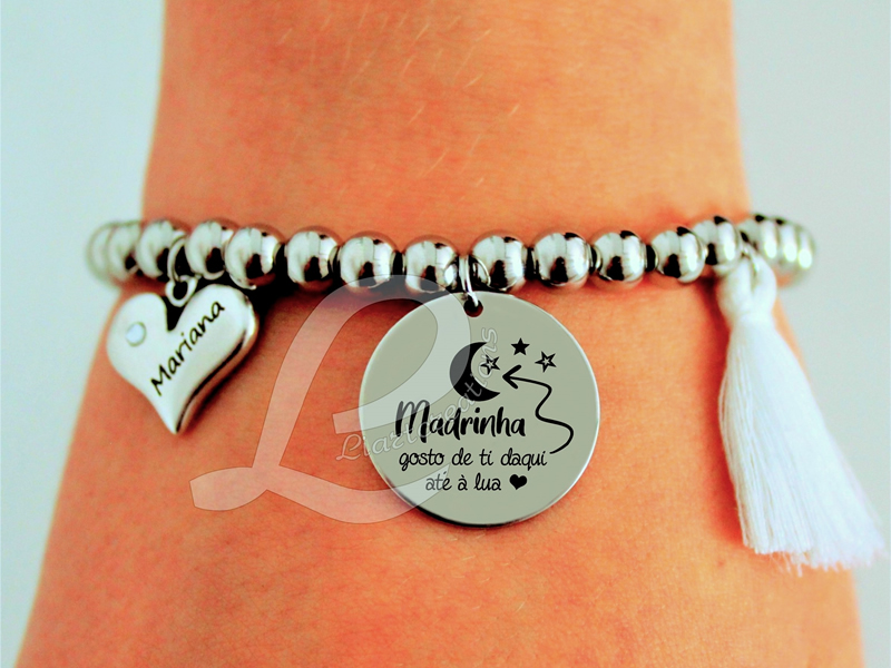 Pulseira Elástica em Aço "Madrinha gosto de ti daqui até à Lua"